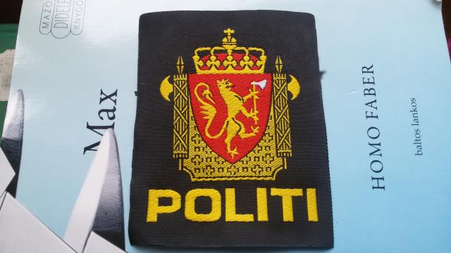 Norvegijos policijos antsiuvas. Tik keitimui į lietuviškus policijos miesto antsiuvus 2 vnt. Vilniaus Kauno Trakų nesiulyti..