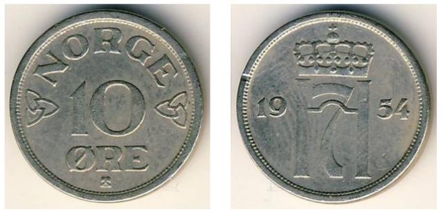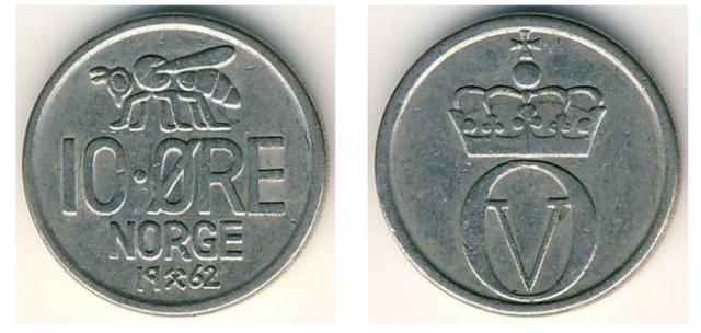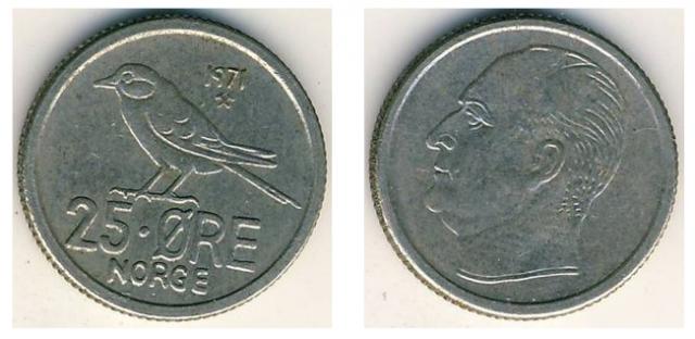 1 Krona 1925/46/49/51; 50 Ore 1947; 10 Ore 1955/56; 1 Ore 1957; 25 Ore 1974/78/81/82 10 Ore 1962/63/67/68/69/71/72/73 25 Ore 1961/62/64/67/73