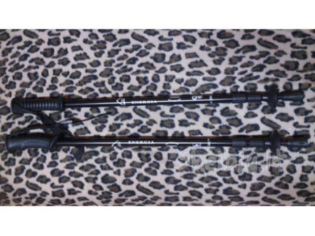 Šiaurietiško vaikščiojimo lazdos "Energia". Rankenos medžiaga-kamštis ir guma, atsegamas rankenos dirželis;galimybė reguliuoti aukštį 63-140cm.