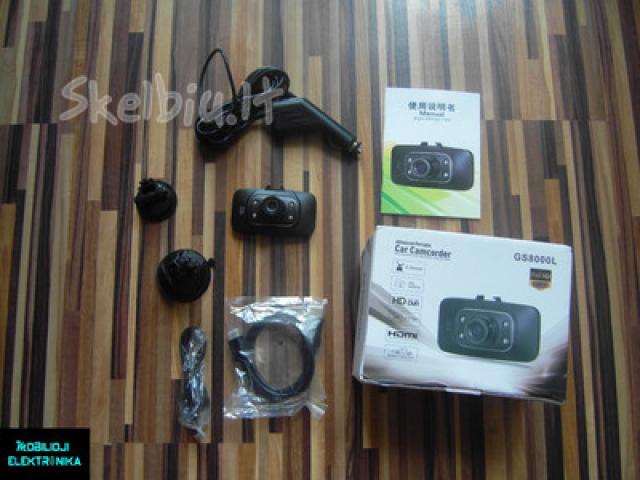 Video registratorius Novatek GS8000L, Jūsų automobiliui. Full HD raiškos, su naktinio matomumo funkcija. HDMI jungtim. 2.7 colio ekranu. Įrašinėja kai kraunasi. Kiekis ribotas! Parametrai: Procesorius - Novatek Video raiška - 1920x1080 /1440 x 1080 /1280x720 / 848 x 480 / 640*480 Nuotraukų skiriamoji geba: 2592x1944 GPS imtuvas - Yra Kamera - 5 MP CMOS Ekranas 2.7 coliai Baterija - 300 mAh Micro sd iki 32GB (nekomplektuojama) Meniu kalba - Anglų, Rusų; Jungtys: HDMI, AV, USB 2.