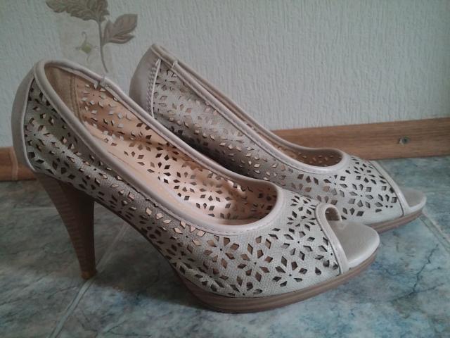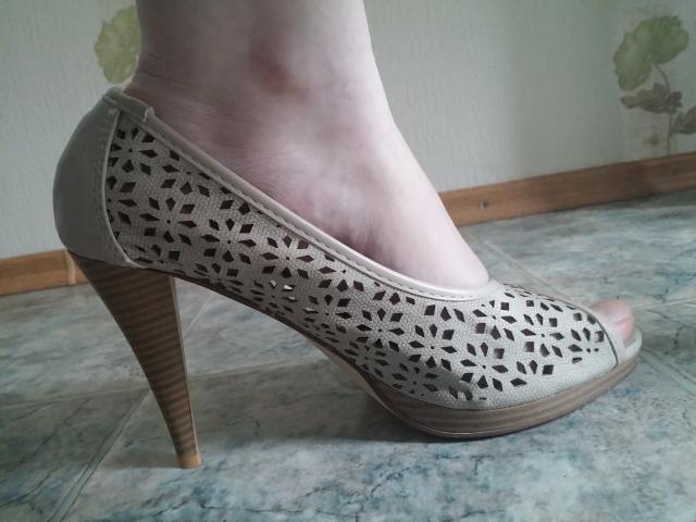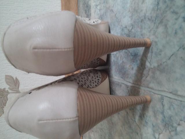 Nude bateliai. Kulniuko aukštis - 10 cm. Platformytė priekyje - 1,5 cm. Dydis - 38 (vidpadis - 24,7 cm.) Šiek tiek mažesnį 39tą nešiojančioms, arba platesne koja irgi tiktų. Nešioti labai minimaliai. Minkštos, plonos odelės (nenatūrali, bet negaliu garantuoti). Kulniukai nė kiek nesubraižyti. Priekyje kiek patrinta, bet tai mažai keičia prekės būklę. Pirkti prieš tris sezonus STEP TOP parduotuvėje. Galime mainyti - jei turėsite tai, kas man patiktų