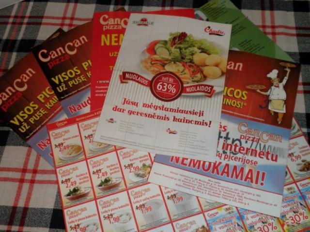 Įvairūs nuolaidų kuponai į įvairius restoranus.