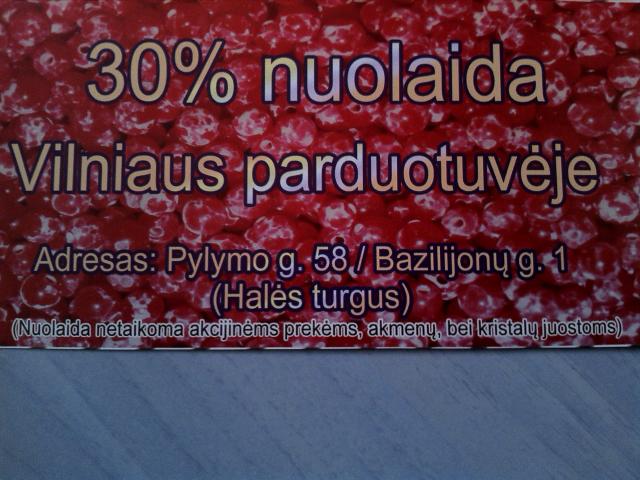 Nuolaidų kuponas 30% nuolaida Vilniaus karoliukų parduotuvėje