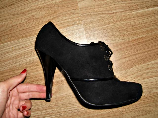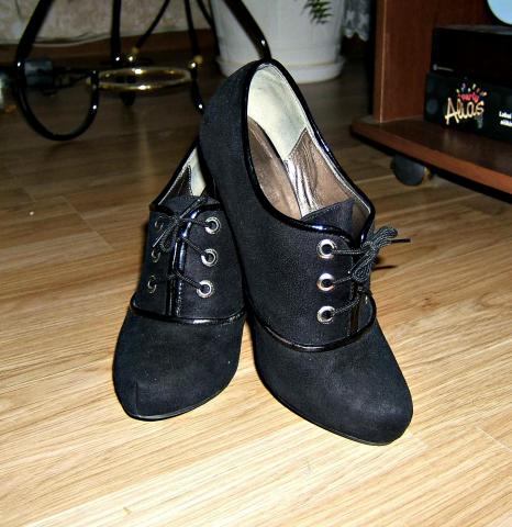 Labai grazus verstos juodos odos, labai patogus aukstakulniai bateliai. be jokiu didesniu defektu, truputeli pasitryne kulniukai ir blizgi odyte kai kuriose vietose, bet siaip atrodo kaip nauji. vidpadis- 23,5cm