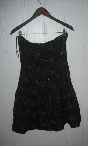 Nuostabi, lengvutė, gramžytos medžiagytės suknelė bet kokiai progai- išleistuvių, karnavalo, gimtadienio, šimtadienio ar bakalauro įteikimo :) Nė karto taip ir neužsidėjau, tad nutariau parduoti, nes man per puošni :) Tamsiai rudos spalvos, puošta blizgučiais ir kaspinu :) Nugaroje per vidurį užtrauktukas, kurio nesimato :)