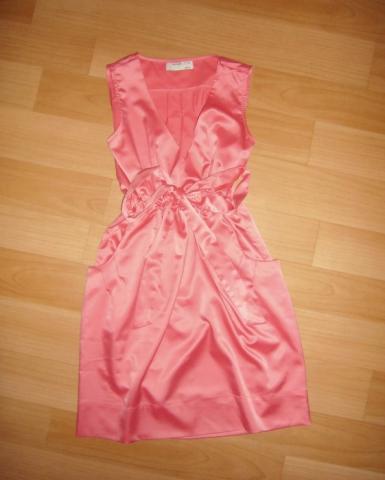 Be galo daili vienetinė suknelė. Realiai fotoaparatas neperteikė viso jos grožio. Taip pat, suknutė man per didelė, todėl neatrodo taip gerai, kaip atrodytų ant šiek tiek pilnesnės merginos. Spalva yra koralinė (šiuo metu labai madinga), ne tokia rožinė kaip atrodo nuotraukose, blykstės kaltė. Dydis nurodytas 36 (S) , fotografuota ant nešiojančios nuo XS iki M. Medžiaga šilko imitacija, labai maloni kūnui. Puikiai tiks kokteilių vakarėliams ir visam kitam. Pirkau sau, bet kadangi per didelė parduodu :( Be d