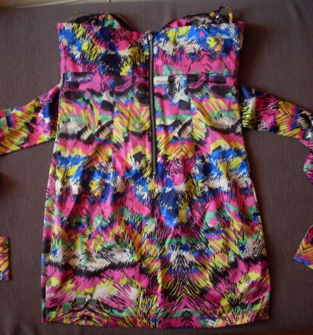 išskirtinio grožio ryškių spalvų šilkinė suknelė, mokėjau 65 svarus, parduodu už 200litu. gale susiriša kaspinas :) yra šleikutės, jas galima nusiimti...10 dydis