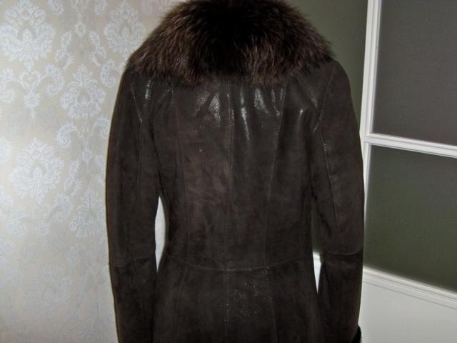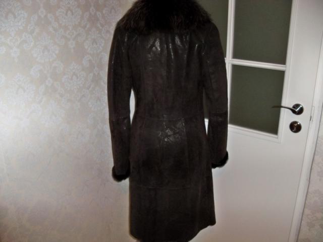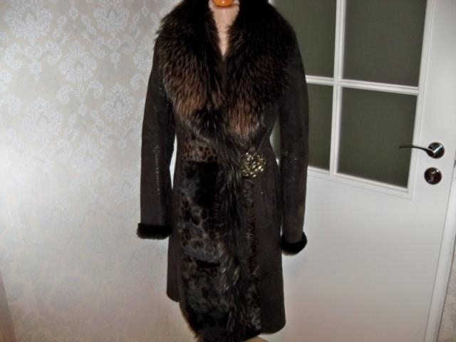 Nuotabi, elegantiška, labai lengva, rudos spalvos dublionkė su natūraliu kailiu. Ilgis 102 cm, pečių plotis 40 cm, rankovių ilgis 70 cm (atsilenkia kiek reikia), nuo pažasties 52 cm, per krūtinę 96 cm, liemenį 86 cm, klubus 108 cm. NEMAINAU natūralus kailis plius siuntimo išlaidos.