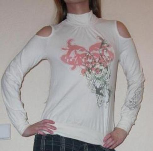 Labai labai grazi ;) apnuogina pecius, nugaroje kaklas susisega 3 sagutemis ;) tokia lyg golfyte, medziagyte labai smagi, tiesiog puikus rubelis ;)