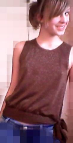 Man parvežė teta is Indijos ,tačiau aš nenešioju nes man nepatinka spalva.. Apačioje užsiriša kaspinas. ;] Tai labai faina bliuskute tačiau man ne prie širdies.. ;] Ruda su auksiniais blizgučiais.. ;]