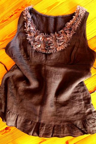 Visiškai nauja, mėlynos spalvos palaidinukė. Dydis universalus. Tinka tiek S, tiek L, kadangi puikiai atrodo tiek ir laisva, tiek ir prigludusi. Yra dirželis, kuris rišasi nugaroje, todėl dar geriau suformuoja palaidinukę.