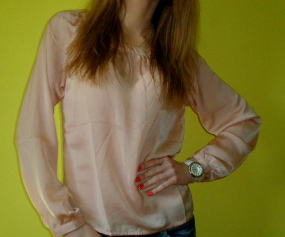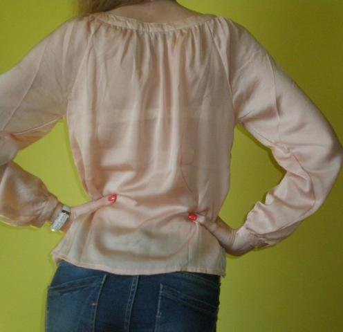 Nauja, nė karto nedėvėta palaidinė, gražiai laisvai krentanti, ilgomis rankovėmis. Medžiaga tokia lyg šilkas, švelni, turi blizgų atspalvį, spalva tarp kreminės ir persikinės. Tiks tiks nuo XS iki S/M ar net M dydžio. NEMAINAU.
