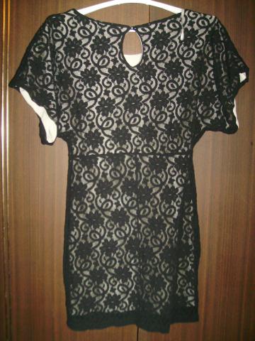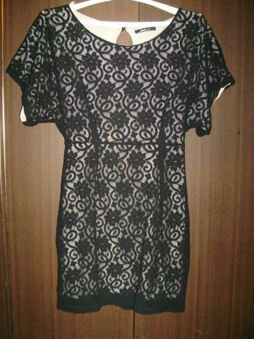 Nauja! Nedėvėta nei karto. Labai gražaus rašto. Tinka s-m dydžiams. Išmatavimai: ilgis-83cm krūtinės apimtis-43x2cm ramybės būsenoj klubų apimtis-41x2cm ramybės būsenoj rankoves platesnės, todėl tikslaus pečių ilgio parašyt negaliu, tačiau tiks bet kokiam šypsena liemuo - 35x2cm ramybės būsenoj