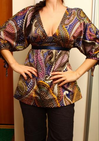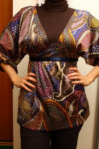 Nuostabaus grožio tunika, deja- man per maža. Dydis sakyčiau S/M. Gan drąsus dekolte, tai galima nešioti ant kažkokios maikutės ar golfiuko žiemą.
