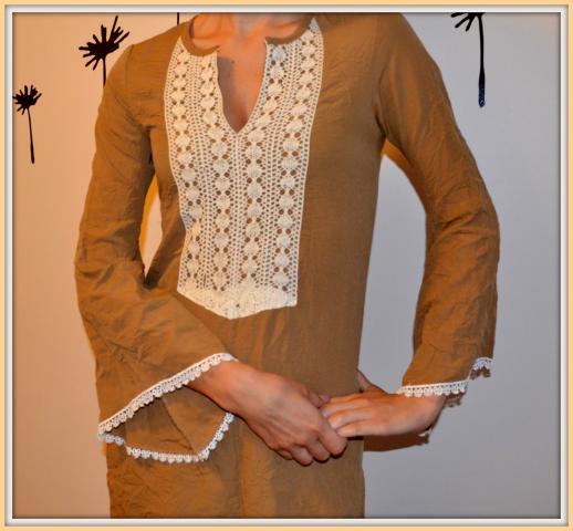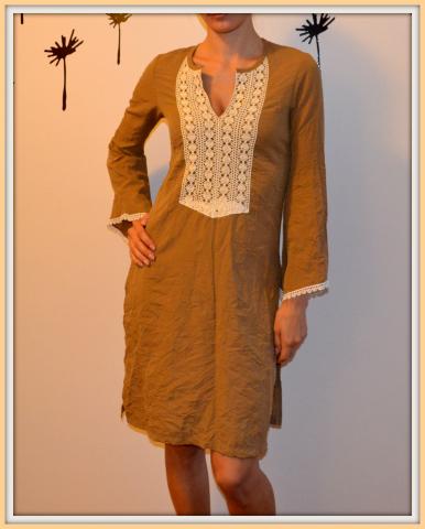 Labai graži tunika su nėriniais. Medžiagytė glamžyta, labai gražu su kūno spalvos timpom. Dydis XS - S (mažesnis), Bendras ilgis - 95 cm.