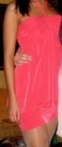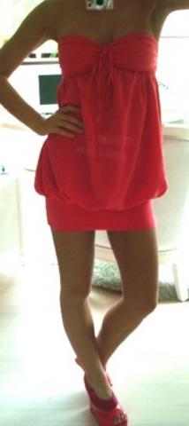 Ryski trumpa rusvos spalvos suknele, pirkta Zaroj.Virsuje susirisa, apatine dalis tulpes formos.