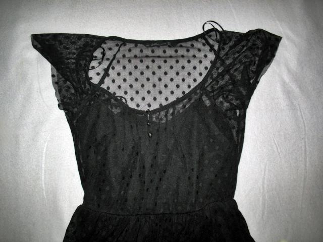 Labai labai norėjau, bet apsirengiau tik vieną kartą, nes vistik labiau mėgstu vintage sukneles. Viršutinė suknelė permatoma su burbuliukais, apačioj, pamušalinė, ji tik ant petnešėlių. dar dvejoju, ar noriu su ja skirtis, taigi mainysiu tik į kažką tikrai labai patikusio arba pinigus.