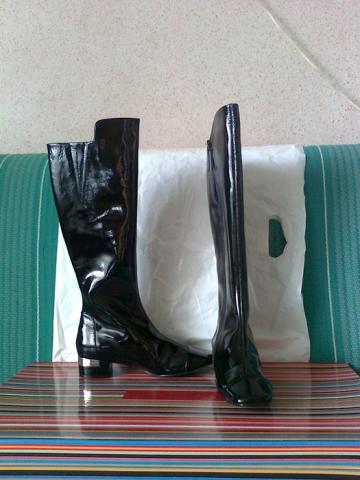 Nuostabūs demi-sezoniniai batai. Lakinė NATŪRALI ODA!!!! nat.oda tiek viduj ,tiek išorėj. Išorinėje pusėje yra užtrauktukas per visą aulą. patogūs labai.kulniukas pusiau kaustytas metalu. nei karto nenešioti ,man per dideli. Pirkti UK , Hill's parduotuvėje už 159 svarus. Dizainerė Fiona McGuiness