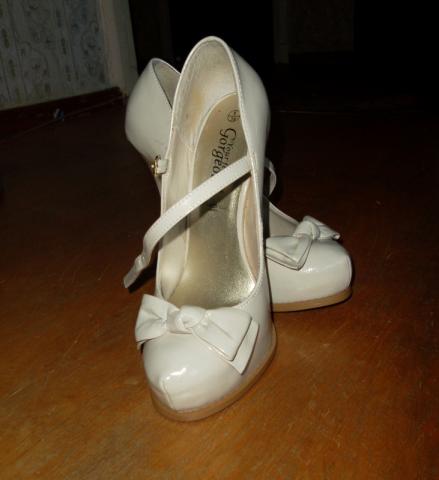 Tiesiog puikūs,nauji aukštakulniai,nerealiai atrodo ant kojos, 12cm ūgio, bet yra platformytė,todėl yra tikrai patogus,plius yra dirželiai,taigi batukai tikrai nekris ir kojytė laikysis tvirtai ir saugiai. Žavūs kaspiniukai ant aukštakulnių suteikia žaismingumo,bei mielumo,kojos atrodo nuostabiai. Neveltui batų firma yra " your feet look gorgeous"