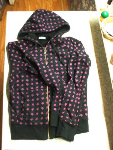 rašo dydį m, tačiau labiau tiktų s. juodas su alyvinėm žvaigždutėm. tikrai labai mielas