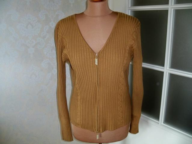 Dėvėtas, nuostabus, garstyčių spalvos, puikios kokybės megztukas-švarkelis. Labiau tinkamas merginai, turinčiai didesnę krūtinę :) Ilgis 60 cm, per liemenį 82 cm, krūtinę 94 cm, rankovių ilgis 60 cm. Puikia tamposi. Užrašytas M dydis, bet tikrai tiks ir L, galbūt net ir XL. Megztukas megztas stulpeliais, puikiai tamposi. Gaila parduoti, bet ... 78 proc.viskozė, 22 proc. nailonas