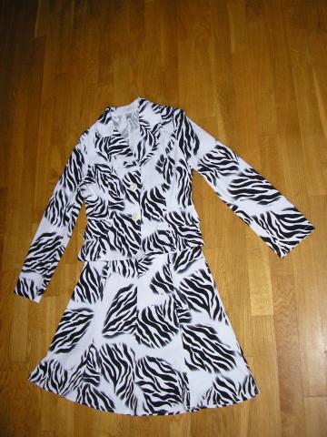 Nuostabus kostiumelis (tampri medziaga), naujas be etiketes. Liemens apimtis 2x38cm, sijono ilgis 45cm, svarkelio ilgis 50cm, svarkelio krutines apimtis 2x 40(41)cm. Rankoves ilgis nuo pazasties 39,5cm.