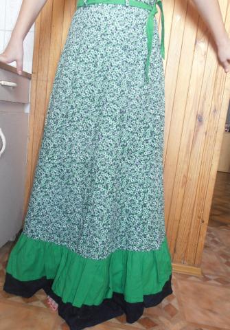 labai žavus,ilgas,platėjantis į galą,patogus,visas ilgis sijono apie97cm,per liemeni apie 66cm,yra užtrauktukas,užsiriša žalias diržas,išradingos mergaitės iš tokių sijonų moka pasidaryt ir sukneles.pagal liemens apimtį rašau dydį s,bet tiktų ir m.tik 16lt siuntimas nemokamas.be defektų.