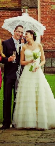 Jūsų šventės fotosesija papuoš nuostabaus grožio skėtis, baltas su dramblio kaulo spalvos gėlytėmis. skėtis tikrai gerame stovyje kaip naujas, panaudotas tik kelias valandas, vestuviniai fotosesijai. Skambinkite tel 862338021