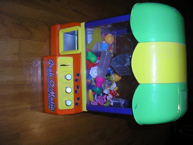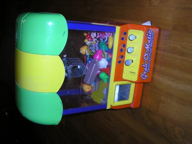 Nuostabus zaidimas "Grab-o -matic" gaudykle, ikeliu nuoroda, kad mazdaug matytusi kaip veikia https://www.youtube.com/watch?v=Z21MH-Cq8uM . "Losimo automatas" Monetu nera, bet puikiai tinka eurai, arba litai šypsena Galima gaudyti zaisliukus, galima gaudyti saldainius. Puikiai tinka vaiku sventems kaip pramoga. Foto matosi nera dangtelio apacioje. Parduodama be zaisliuku esanciu viduje. Aukstis 35cm, plotis 27cm.