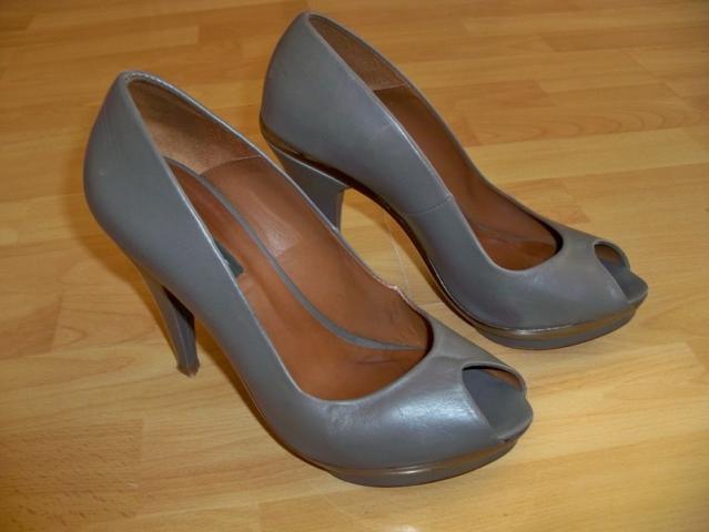Nuostabūs, natūralios odos bateliai.Gaila, bet po traumos nebegalėsiu tokių nešioti. Kulno aukštis 12 cm, priekyje yra 2 cm platforma. labai patogūs, praktiški, prie visko derantys. vidpadžio ilgis 26 cm. Pilnai atitinka 40 dydį. Spalva tamsiai pilka. NEMAINAU