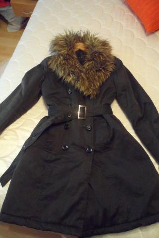 Žieminis paltukas su kailine apykakle.Labai šiltas. Mažai nešiotas. Yra diržiukas, kailis nusiima .Defektų nėra. Kaina 100lt + pašto išlaidos.