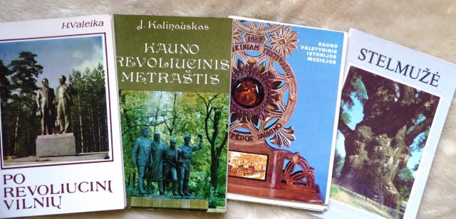 1) "Po revoliucinį Vilnių" H.Valeika,brošiūrėlė supažindinama su socialinių ir nacionalinių sąjūdžių, taip pat revoliucinių kovų Vilniuje vietomis bei paminklais. Aprašomi tie oblektai, kurie yra paženlinti memorialinėmis lentomis. Paminklai pristaromi pagal jų reprezentuojamų įvykių chronologiją."Mintis", 46 psl.,minkšti virš., 2)"Kauno revoliucinis metraštis"J.Kalinauskas, minkšti virš.,1980,46 psl. 3)"Kauno valstybinis istorijos muziejus" 14 nuotraukų.1980, "Mintis" 4)"Stelmužė", A.Žilėnas, 1987, "Mintis