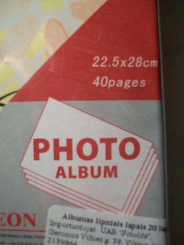 Naujas, neišpakuotas nuotraukų albumas. Lipnus (pasikelia plėvelė, įsideda nuotrauka). Patogu, nes neiškrenta, nepasimeta nuotraukos.