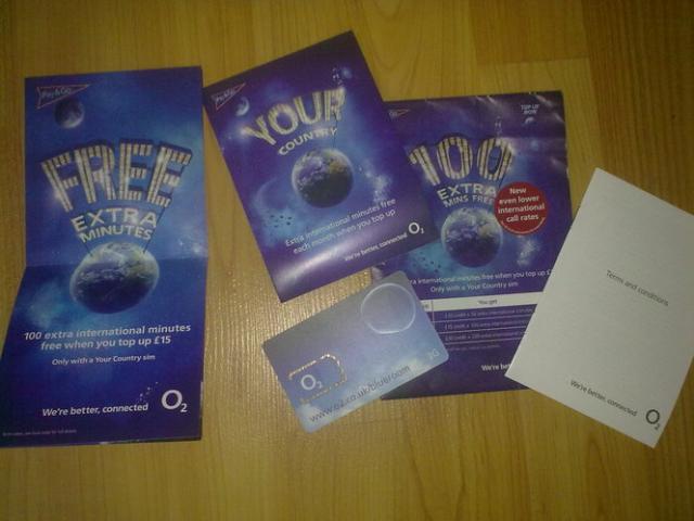 Ispakuota aktyvavimuj, nauja O2 UK SIM kortele su knygelemis.