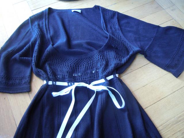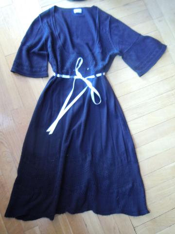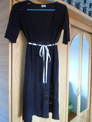 Juoda Oasis firmos suknele, lengvute, virsus ir apacia nertas ar megztas mechaniniu budu. Deveta. Kaina nurodyta su siuntimu.