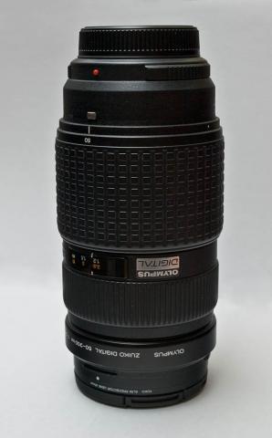 Objektyvas Olympus Zuiko Digital ED 50-200mm F2.8-3.5 (ne SWD). Yra priekinis ir galinis dangteliai (galinis dangtelis originalus), trikojo adapteris, apsauginis filtras Toko 67mm. Ant priekinio objektyvo lęšio yra nežymus skaidrinamosios dangos pažeidimas, pats stiklas nepažeistas, nuotraukoms tai neturi jokio matomo poveikio. Vietomis nežymiai apsitrynusios objektyvo ženklinimo raidės. Kitais atžvilgiais objektyvas atrodo ir dirba nepriekaištingai.