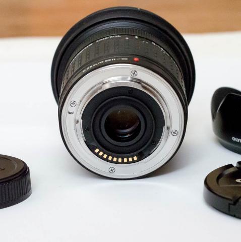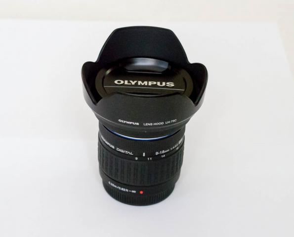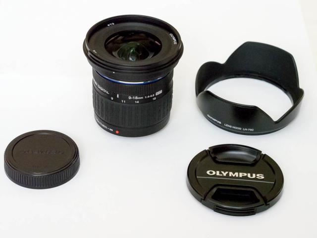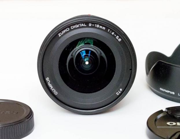 Objektyvas Olympus Zuiko Digital ED 9-18mm F4.0-5.6. Visi originalūs priedai (priekinis ir galinis dangteliai, blenda, įpakavimo dėžutė, dokumentai). Objektyvas atrodo ir veikia nepriekaištingai.