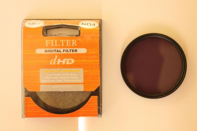 Visiškai nenaudotas 58mm skersmens filtras objektyvui. ND4. Panaikina reflekcijas, prislopina šviesą, kai fotografuojama labai saulėtą dieną.