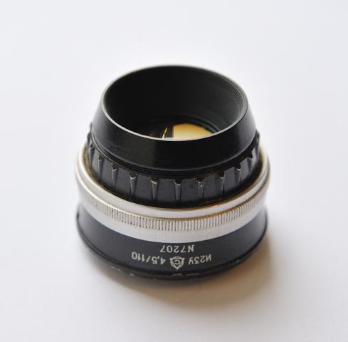 Didintuvo objektyvas и23у 110/1.5 M39, tačiau galima naudoti kaip makro objektyvą kartu su žiedais ar dumplėmis: http://radojuva.com.ua/2013/01/obzor-industar-23-u-4-5-110mm/