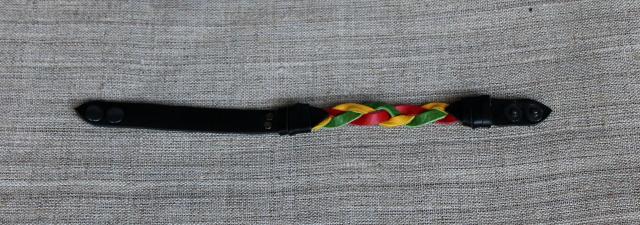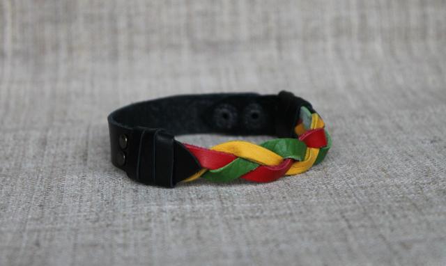 Rankų darbo juoda odinė apyrankė, dekoruota Lietuvos vėliavos spalvų motyvais. Apyrankė puikiai dera prie originalaus Jūsų stiliaus, tinka siekiantiems subtilaus išskirtinumo. Lietuviškais motyvais dekoruotas aksesuaras – išskirtinė dovana tiek Lietuvoje, tiek svečiose šalyse gyvenantiems draugams. Plotis: 14 mm Užsegimo tipas: spaudės Sudėtis: natūrali oda, metalinės kniedės Daugiau odinių gaminių www.evaleath.lt