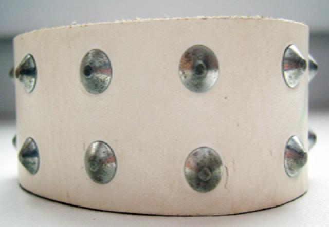 Odinė balta apyrankė su spygliukais, nėra įplyšimų, tik šiek tiek išpaišyta bet nusiplaus :)