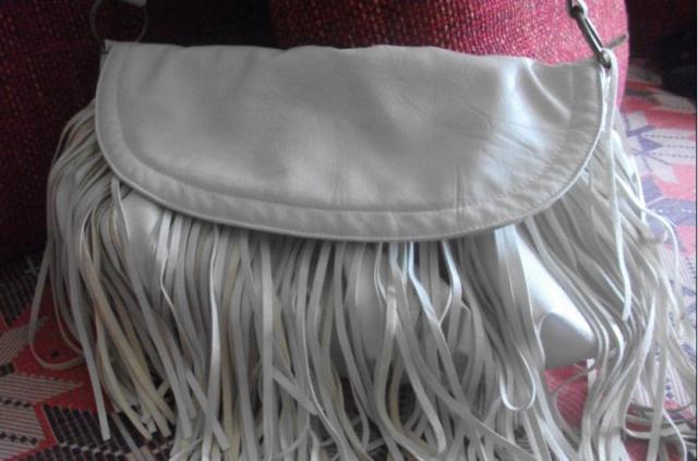 grazi rankine baltos spalvos su baltais kutais. rankena trumpa, permetama per peti. mazai nesiota, atrodo kaip nauja. parvezta is uzsienio, rankena pinta. naturali oda!