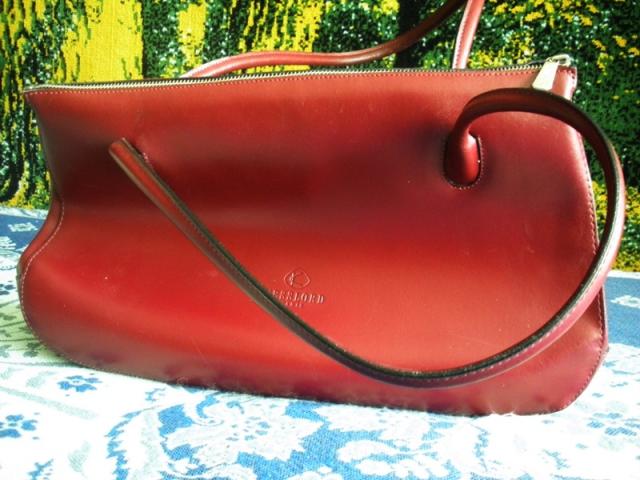 Labai graži, moteriška bordo spalvos odinė rankinė. Įdomi, kiek vintažiška. Defektas matosi nuotraukoje, vienos rankenos vienoj pusėj yra kiek įplyšę, taip pat kiek apibraižiota. Talpi, o užtrauktukas pilnai atsisega (kaip švarkeliuose ar striukėse, pavyzdžiui). Ilgis 40cm, aukštis 24cm, rankenų ilgis nuo užtrauktuko 22cm. Puikiai nešiojama tiek ant rankose, tiek ant peties. : )