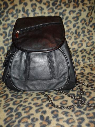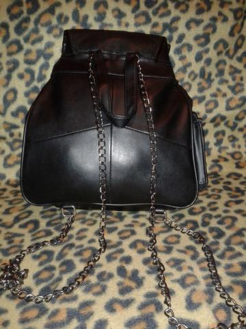 Odinė juoda kuprinė, su geležinėm šleikom.