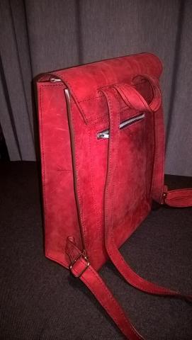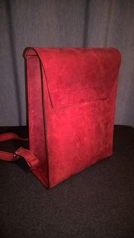 Vienetinė rankų darbo odinė kuprinė. Labai talpi ir patvari. Turi užsegamą skyrelį gale, ir neužsegamą viduje. Rankenos reguliuojasi.