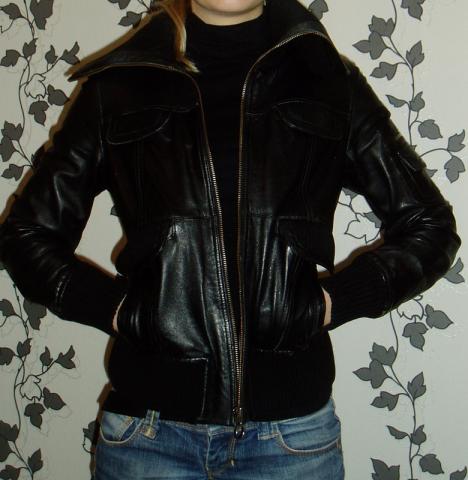Labai graži striukytė su dideliu kaklu. Tikrai geros būklės. Natūralios odos. Kaina 90lt