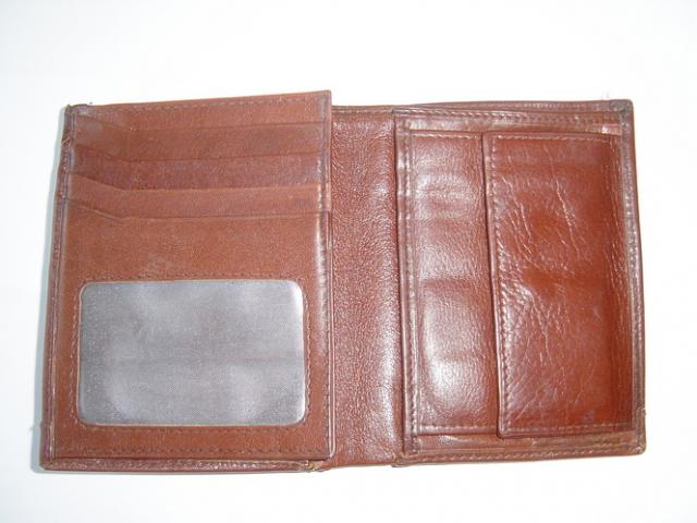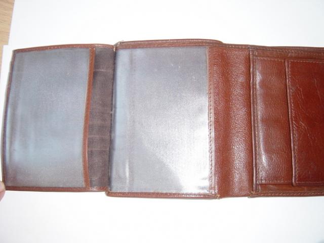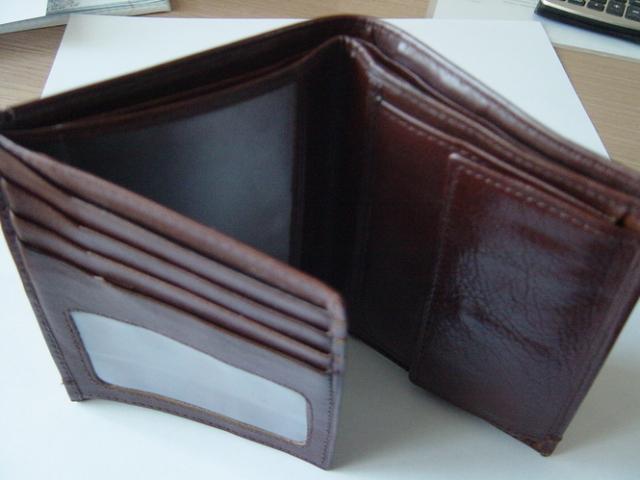 odinė piniginė, du skyriai banknotams, uzsegamas skyrius monetoms, skyreliai kortelems :)