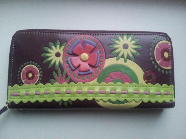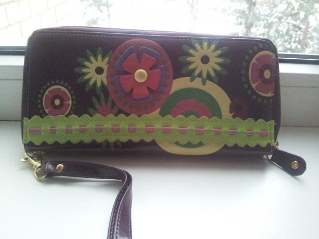 Nauja piniginė, odinė, puošta spalvingom aplikacijom, spalva violetinė