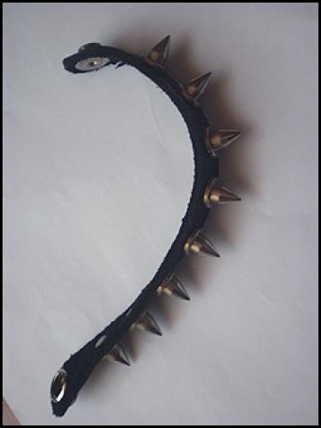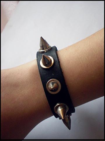 Juoda odinė apyrankė su spygliukais. Iš viso 8 vidutinio dydžio spygliukai.