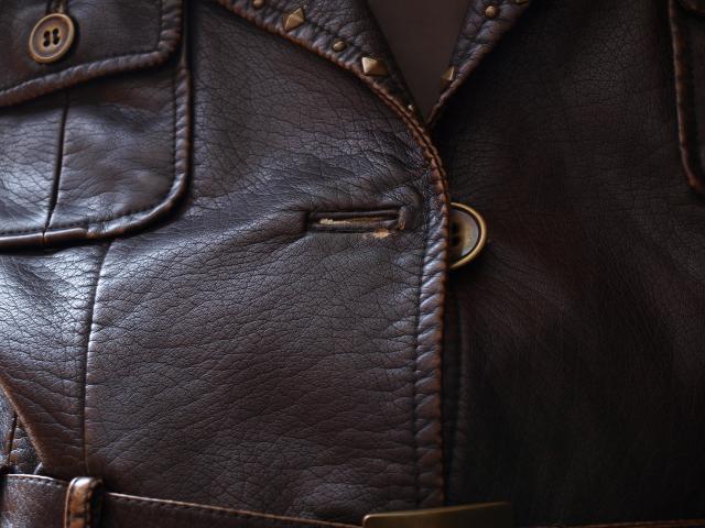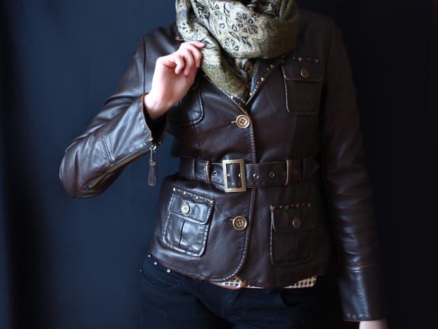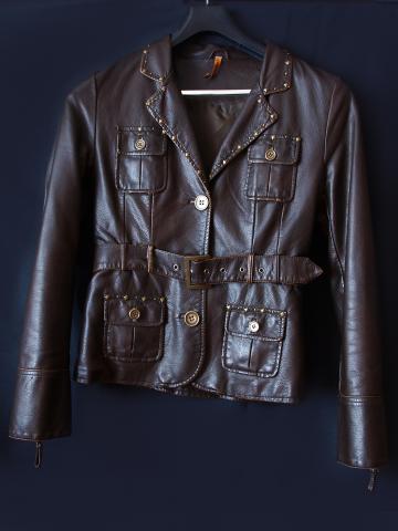 Tamsiai ruda dirbtinės odos striukytė. Defektas - nusitrynusi oda prie sagos kilpos. Etiketėje rašomas L dydis, bet nešioju M. Pavasario/rudens sezonams.
